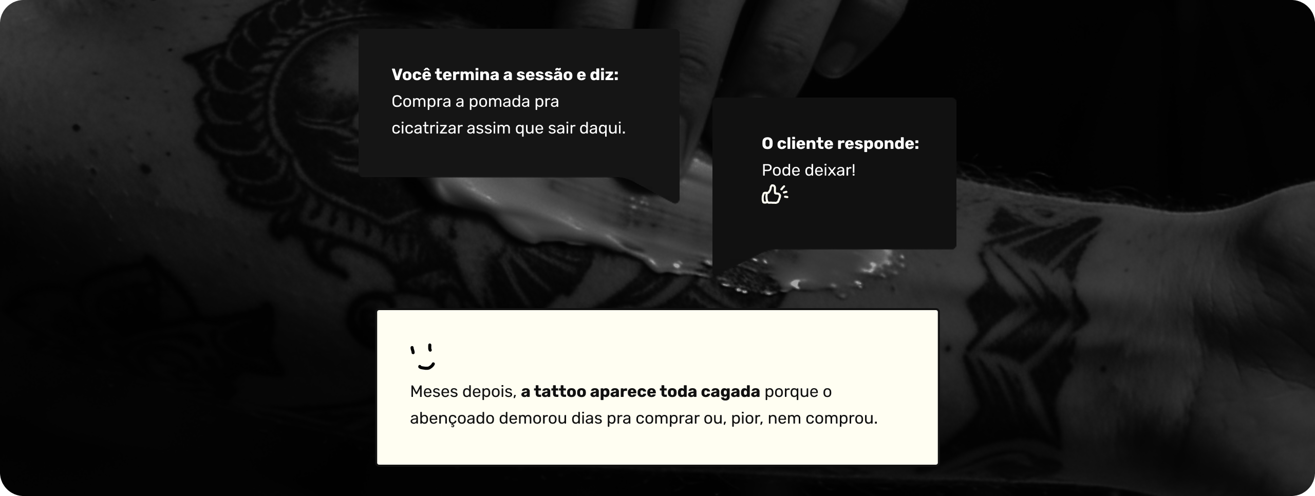 Você coloca um tubo inteiro de pomada cicatrizante, que pode ficar caro para você e o cliente nem vai precisar daquilo tudo.